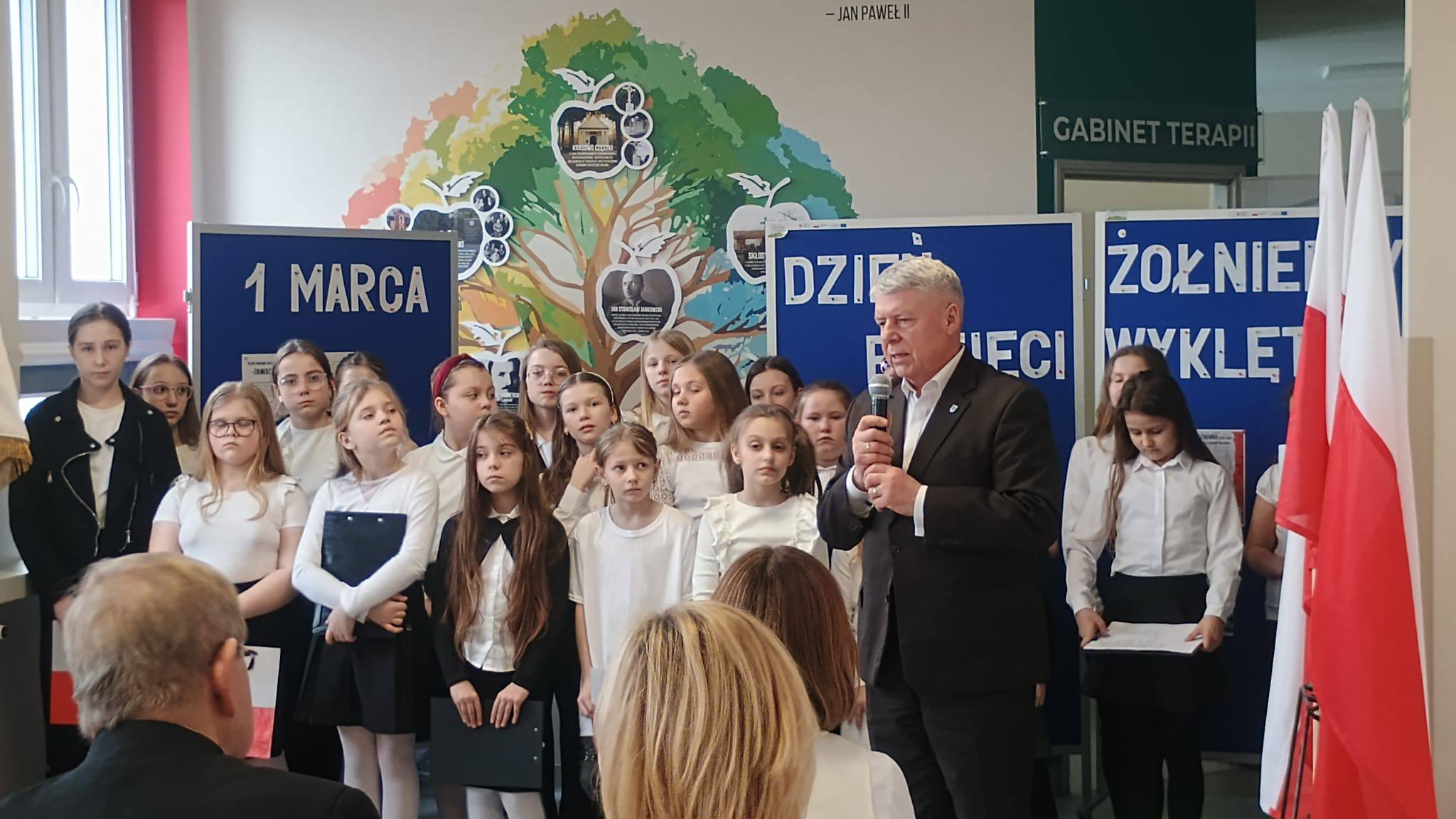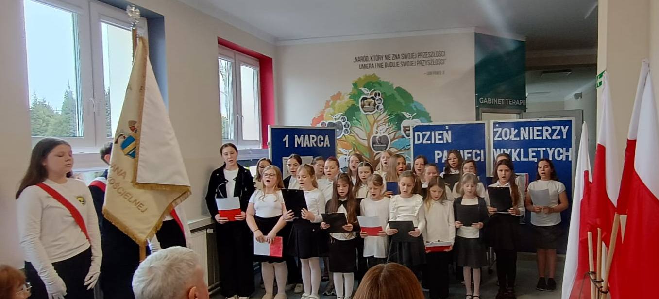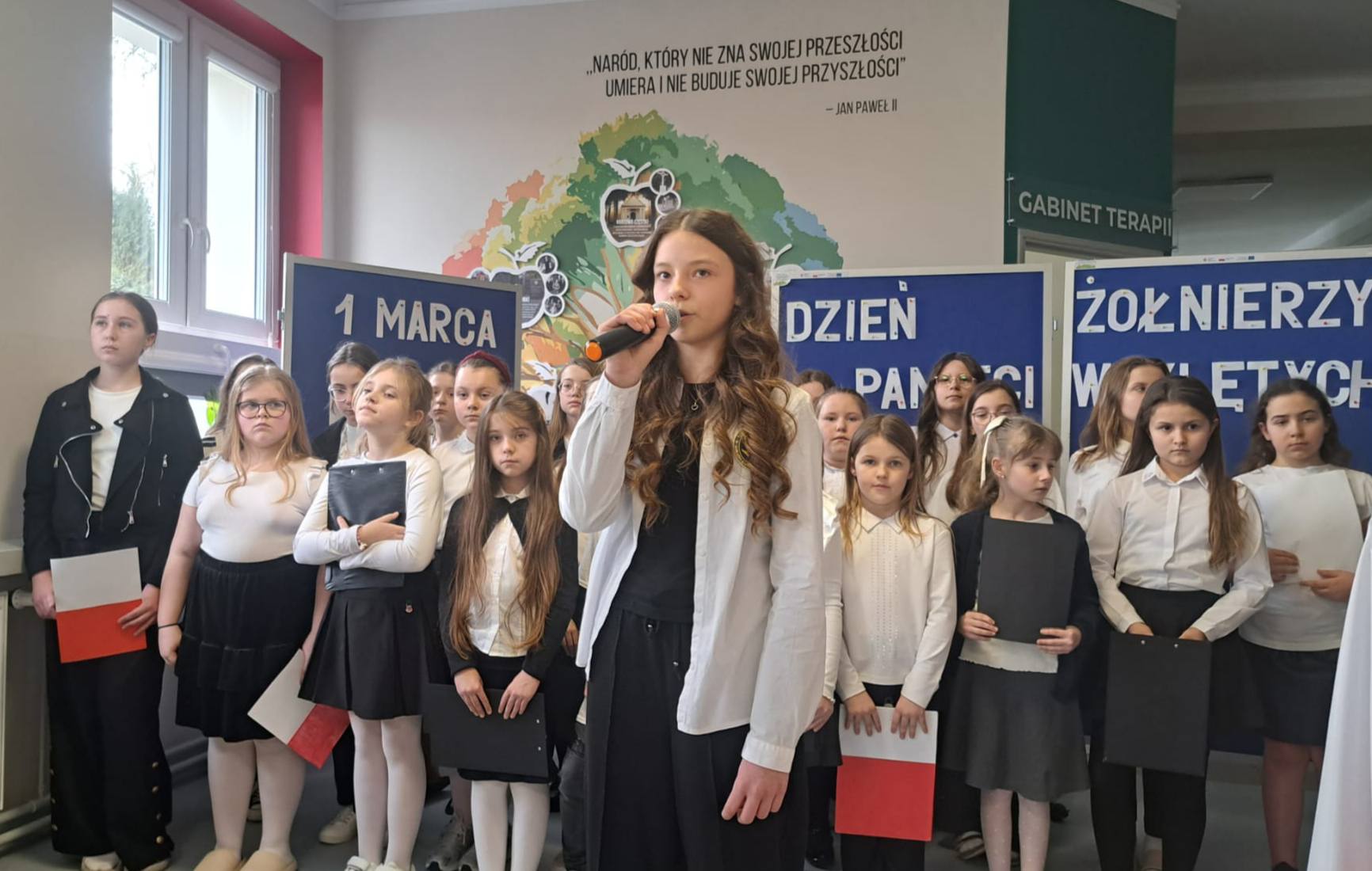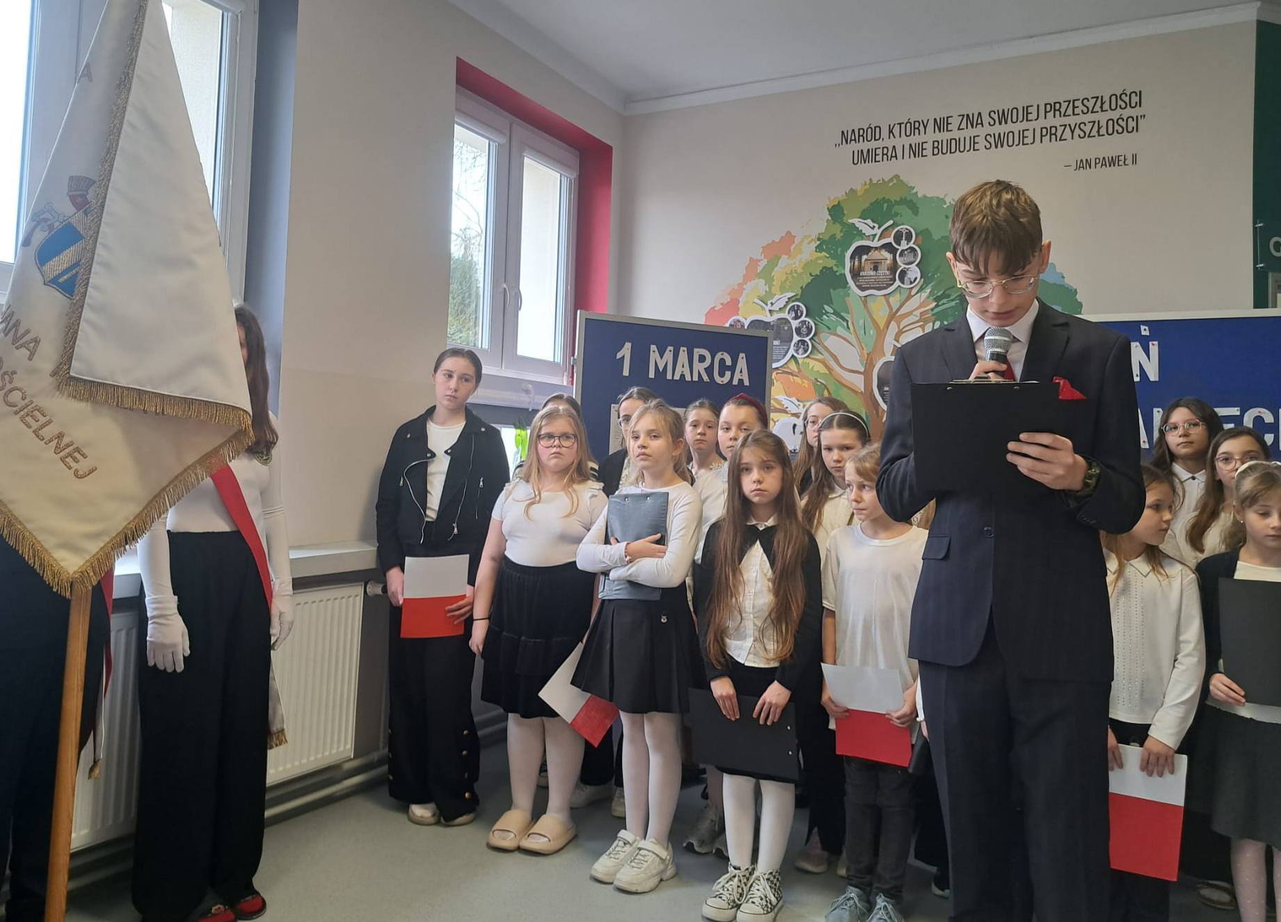 Dziś odbył się uroczysty Apel poświęcony pamięci Żołnierzy Wyklętych przygotowany przez uczniów i nauczycieli naszej szkoły.