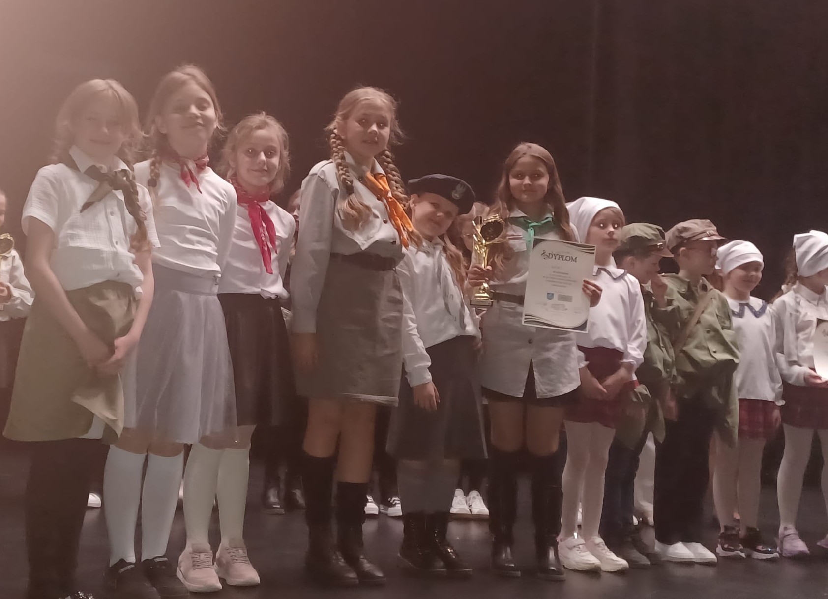 Uczniowie reprezentujący naszą szkołę wykonując utwory ,, Dalej wesoło'' i ,, Warszawskie dzieci '' zostali wyróżnieni,a na najwyższym stopniu podium: