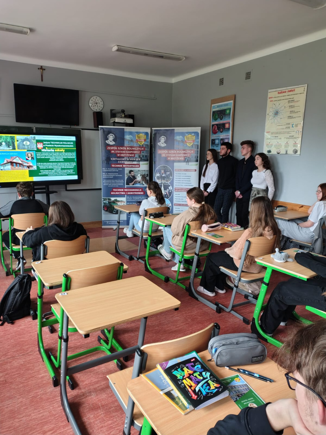 W dniu wczorajszym naszych ósmoklasistów odwiedził dr Rafał Iwan - Dyrektor szkoły wraz z przedstawicielami uczniów ZSR w Krzyżewie – w delegacji uczniowskiej znalazł się nasz absolwent Mateusz Chim. Ósmoklasiści zostali zapoznani z ofertą szkoły w Krzyżewie i zaproszeni do składania aplikacji.