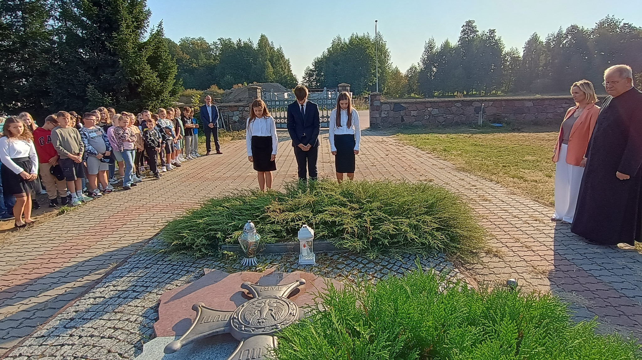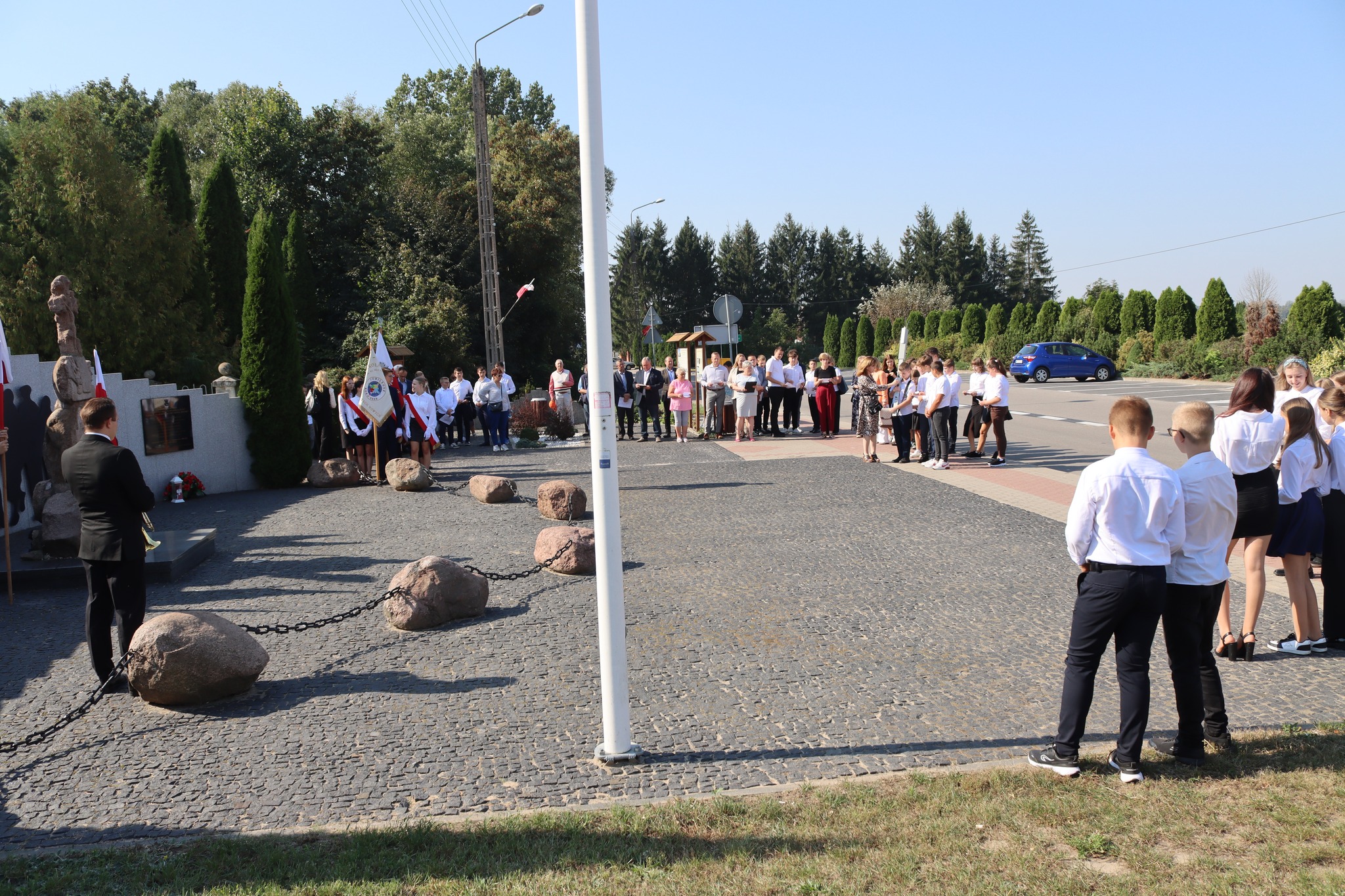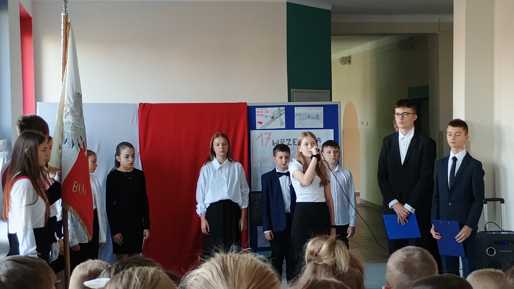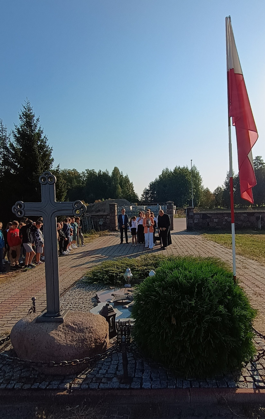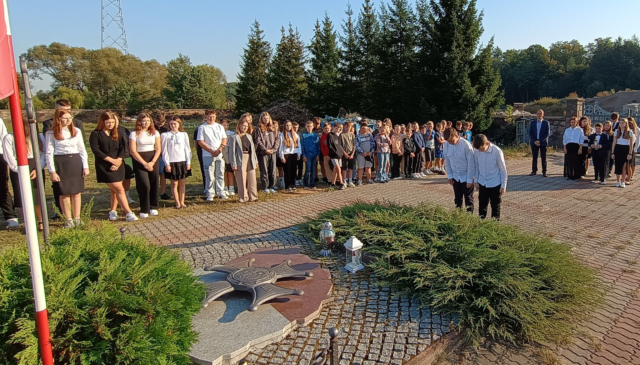 Następnie uczniowie klasy ósmej wraz z Nauczycielami i Dyrekcją oraz z reprezentującym szkołę Pocztem Sztandarowym udali się do Nowych Piekut, by tam wziąć udział w Przemarszu Szlakiem Znaków Pamięci Polskiej Golgoty Wschodu, którym wspólnie uczczono 85. rocznicę agresji Związku Sowieckiego na Polskę oraz Światowy Dnia Sybiraka.