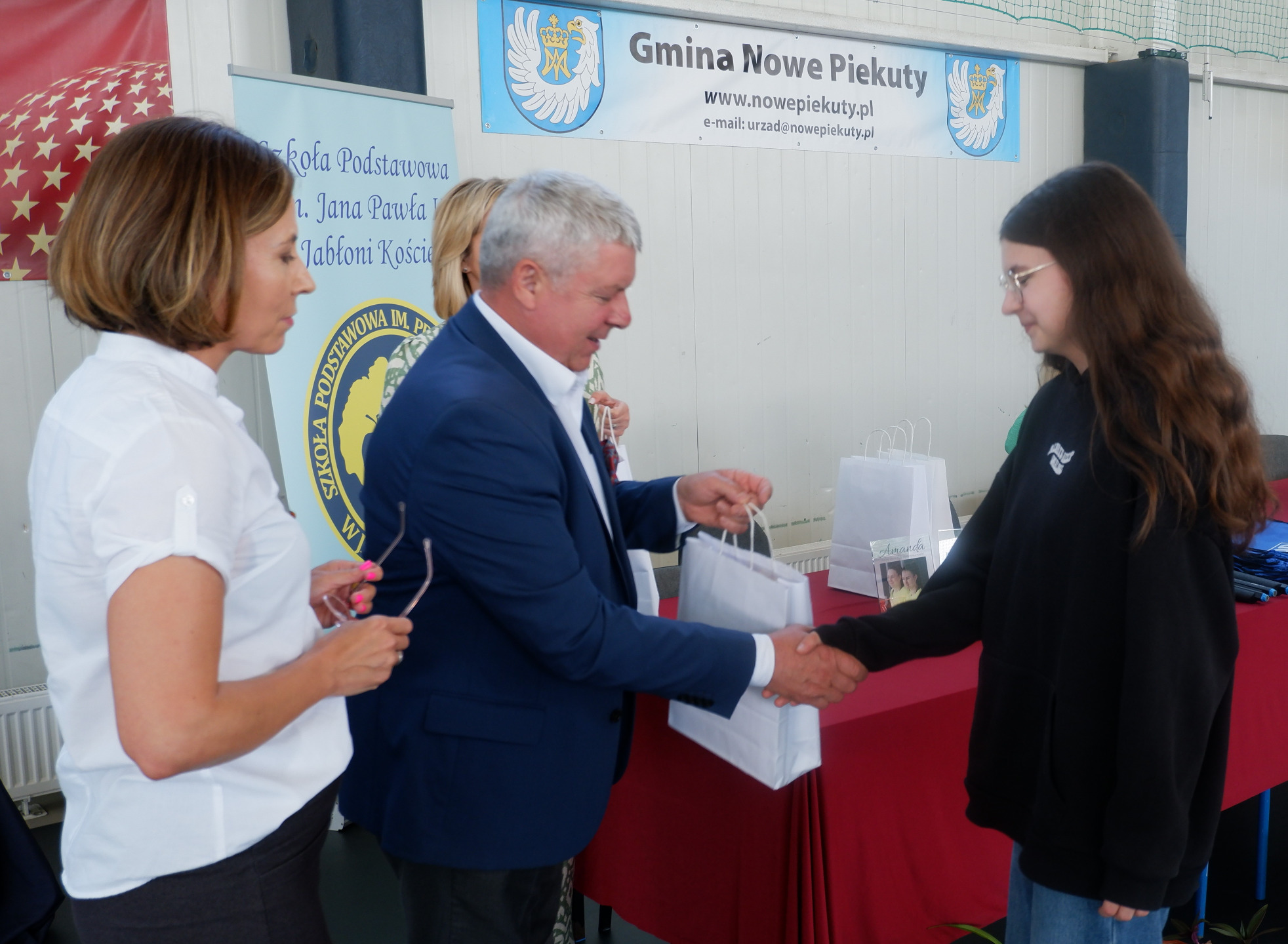 Nagroda specjalna dla Mai Niemyjskiej z kl. VII za pracę plastyczną jej autorstwa dotycząca ks. Kruszewskiego od Pana Jacka Harasimiuka- dzięki jego staraniom tytuł Sprawiedliwego wśród Narodów Świata otrzymał w ubiegłym roku ks. Adolf Kruszewski .