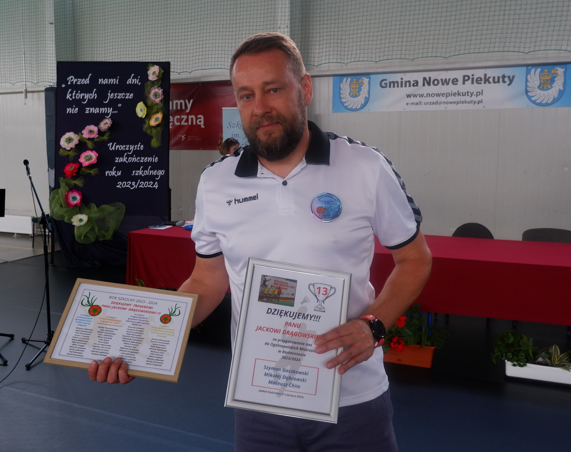 20 czerwca 2024r. podczas apelu podsumowaliśmy osiągnięcia naszych uczniów w mijającym roku szkolnym. Sukcesów było wiele...Cieszymy się, że mamy tak zdolnych, kreatywnych i chętnych do działania uczniów. Dziękujemy za ufundowanie nagród przez Gminę Nowe Piekuty- Radzie Gminy Nowe Piekuty oraz Wójtowi Gminy Nowe Piekuty Panu Markowi Kaczyńskiemu, a także Radę Rodziców przy ZSP w Jabłoni Kościelnej na czele z Przewodniczącym Panem Leszkiem Dąbrowskim.