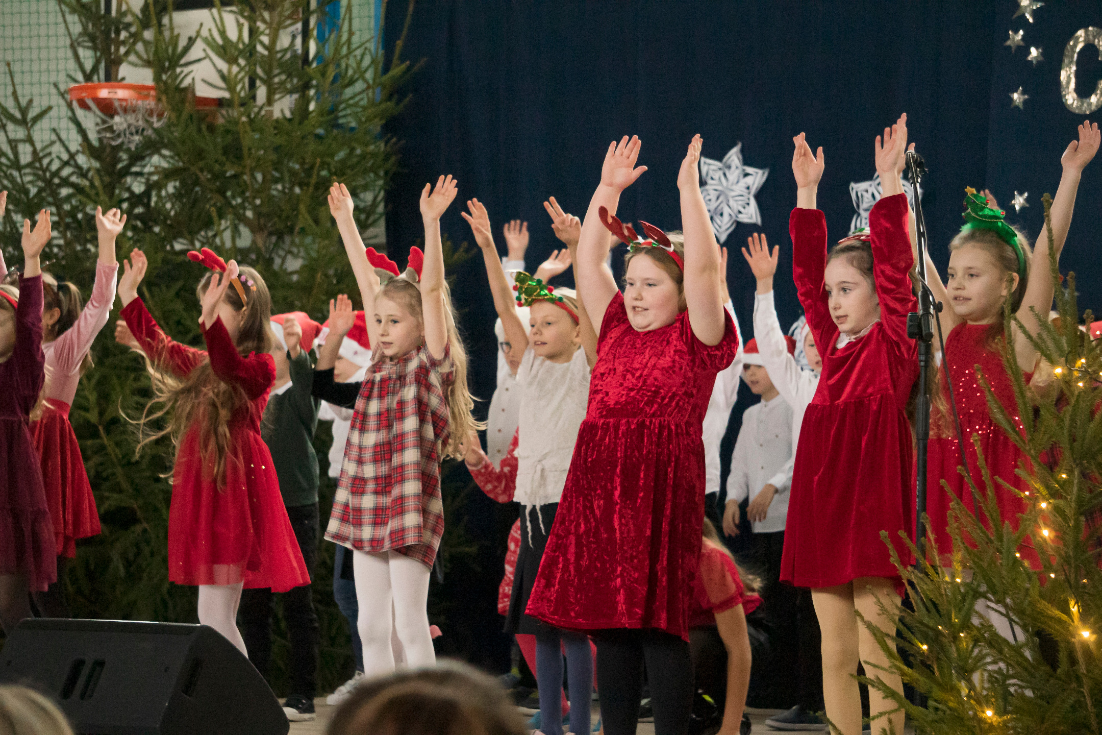 Tradycyjnie rozpoczęliśmy od pokazów przygotowanych przez uczniów pod czujnym okiem nauczycieli – były tańce, układy choreograficzne, piosenki i oczywiście na koniec tradycyjnie wizyta Mikołaja rozdającego prezenty dla najmłodszych. Atrakcje towarzyszące, z których mogli w czasie trwania imprezy korzystać wszyscy uczniowie zapewniła Rada Rodziców Jabłoń Kościelna: