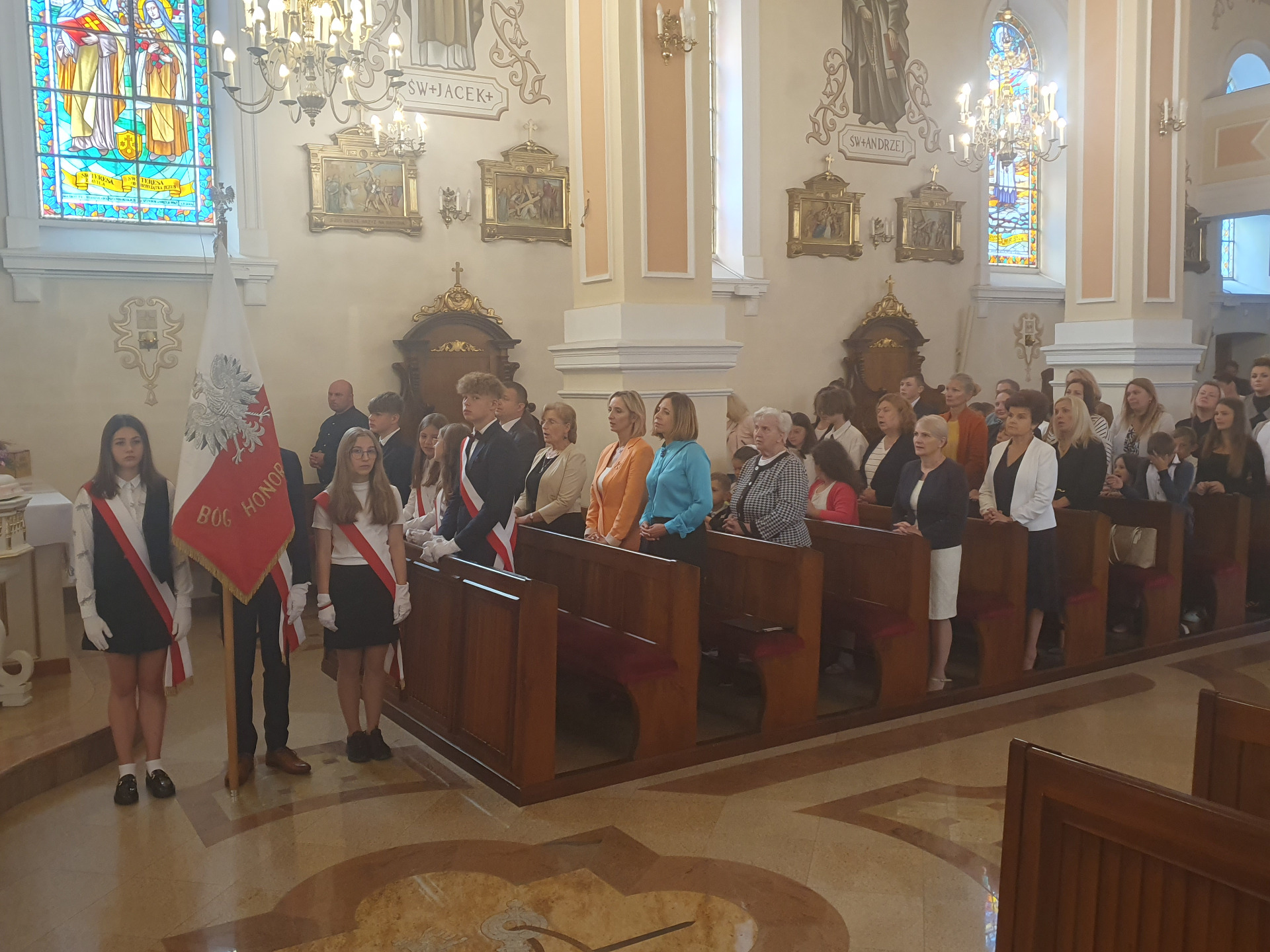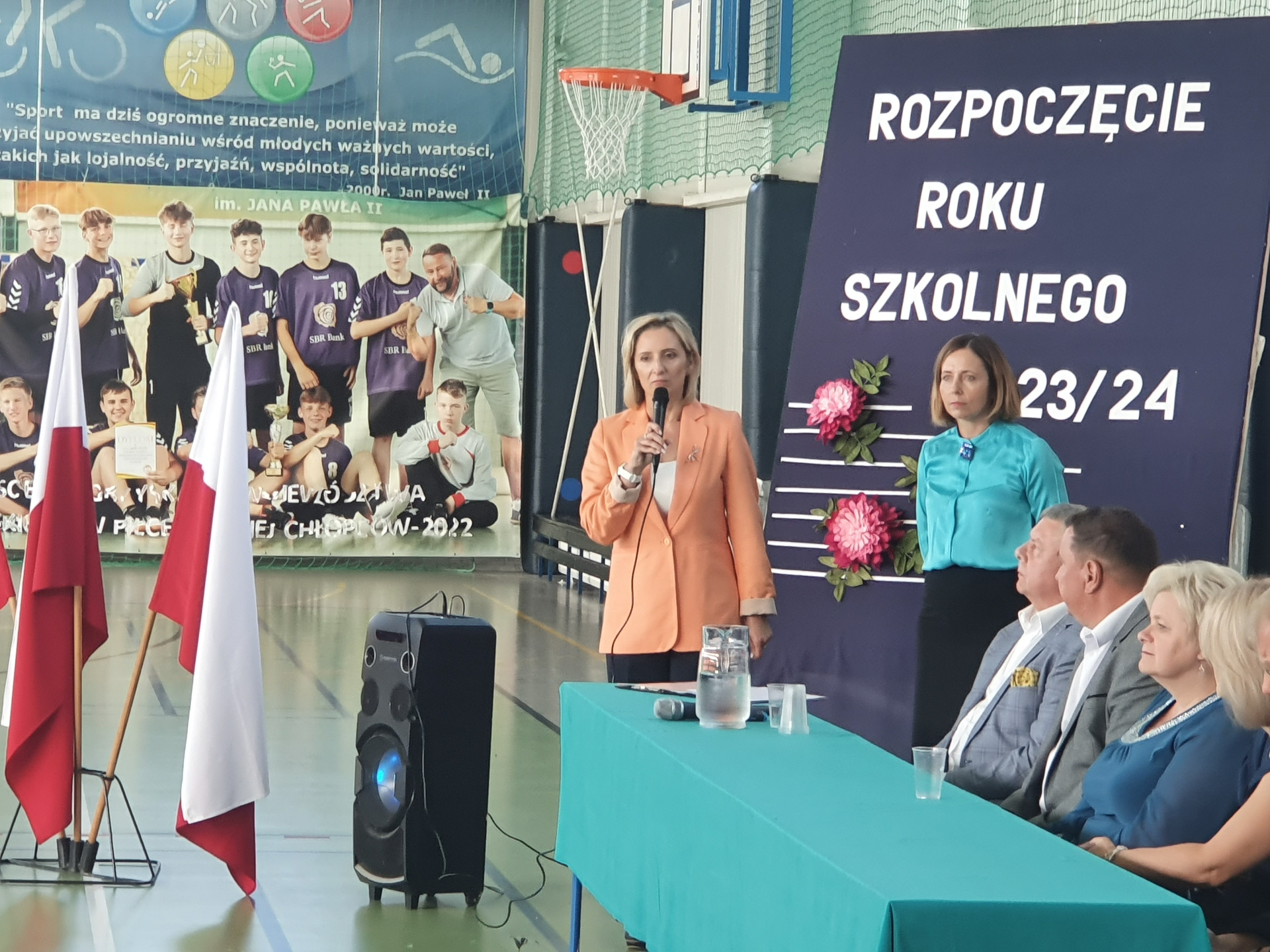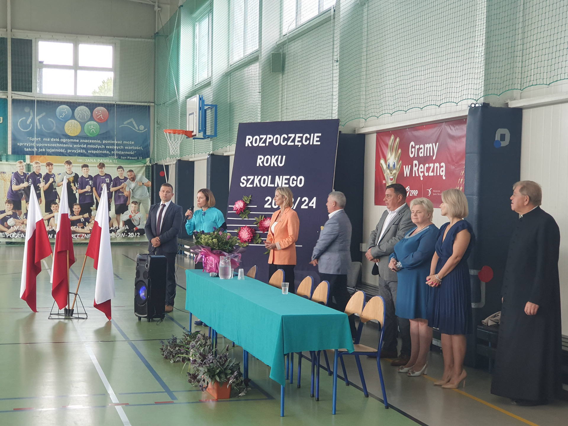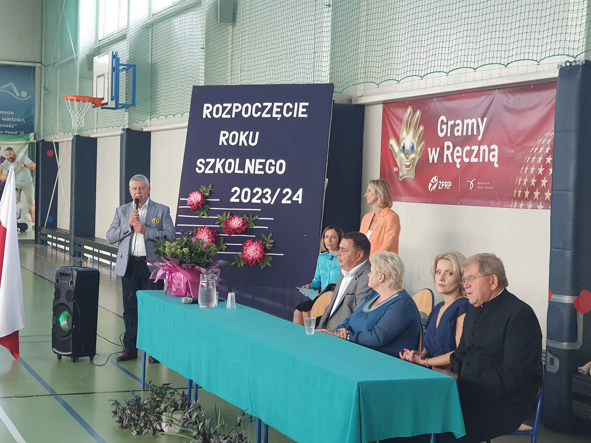 W poniedziałek, 4 września Dyrekcja, Grono Pedagogiczne, Uczniowie, Rodzice oraz zaproszeni goście wzięli udział w uroczystej inauguracji nowego roku roku szkolnego 2023/2024 w Zespole Szkolno-Przedszkolnym w Jabłoni Kościelnej. Rozpoczęliśmy tradycyjnie od uroczystej Mszy Św. celebrowanej przez księdza proboszcza Andrzeja Łapińskiego, by następnie udać się na część oficjalną na sali gimnastycznej.