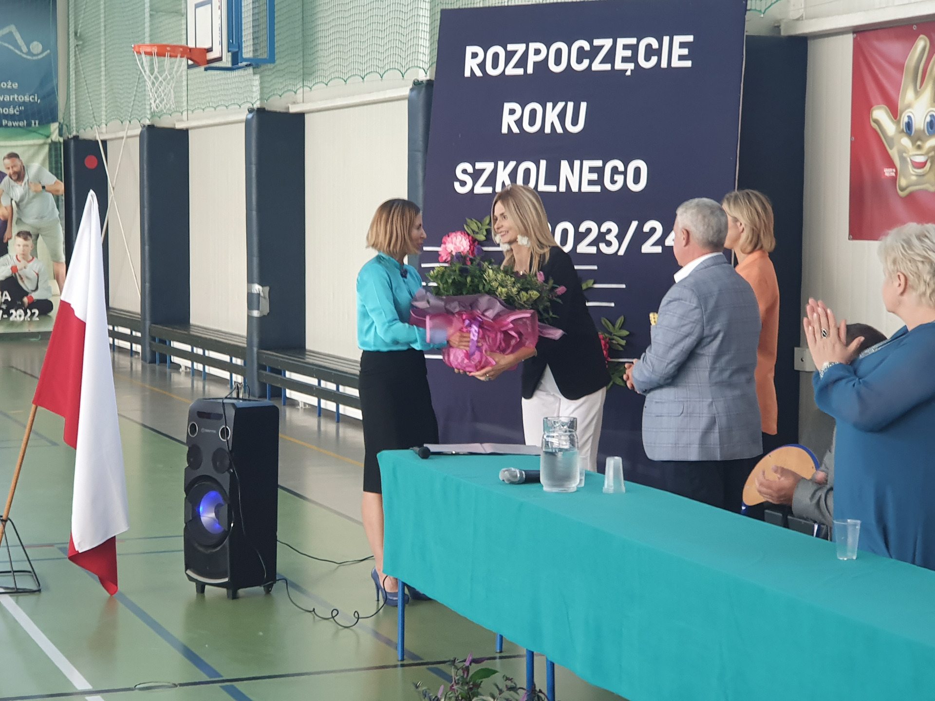 Wójt Gminy Nowe Piekuty Pan Marek Kaczyński w swoim przemówieniu przedstawił zmiany, które zaszły w naszej szkole po wakacjach. Nowym dyrektorem szkoły jest Pani Katarzyna Mantur, a wicedyrektorem Pani Monika Kusznerko. Serdecznie gratulujemy i życzymy sukcesów i satysfakcji na nowych stanowiskach.