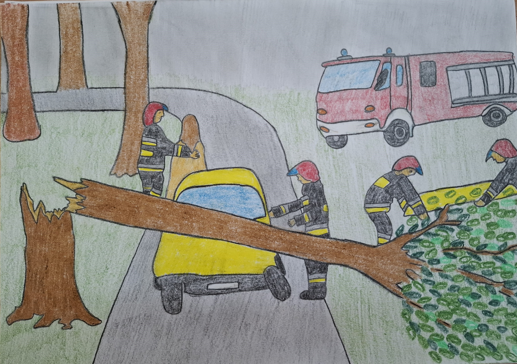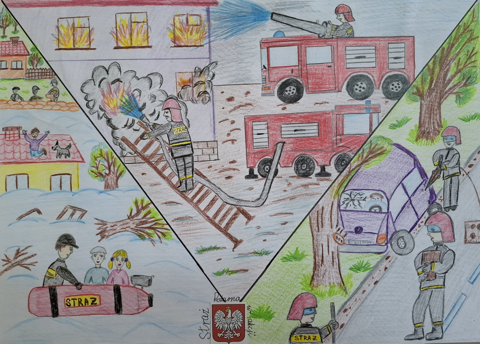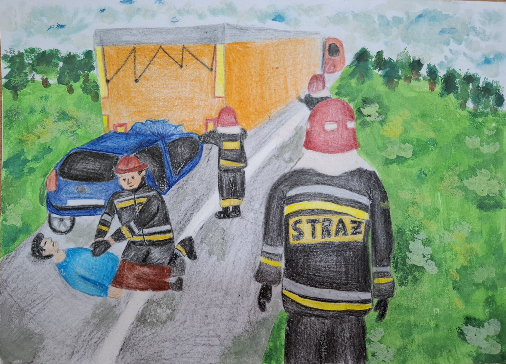 Uczestnicy przygotowali prace plastyczne przedstawiające działania strażaków oraz ich zaangażowanie w pomoc drugiemu człowiekowi. Prace wyróżniały się pomysłowością, starannością wykonania oraz ciekawym ujęciem tematu.
