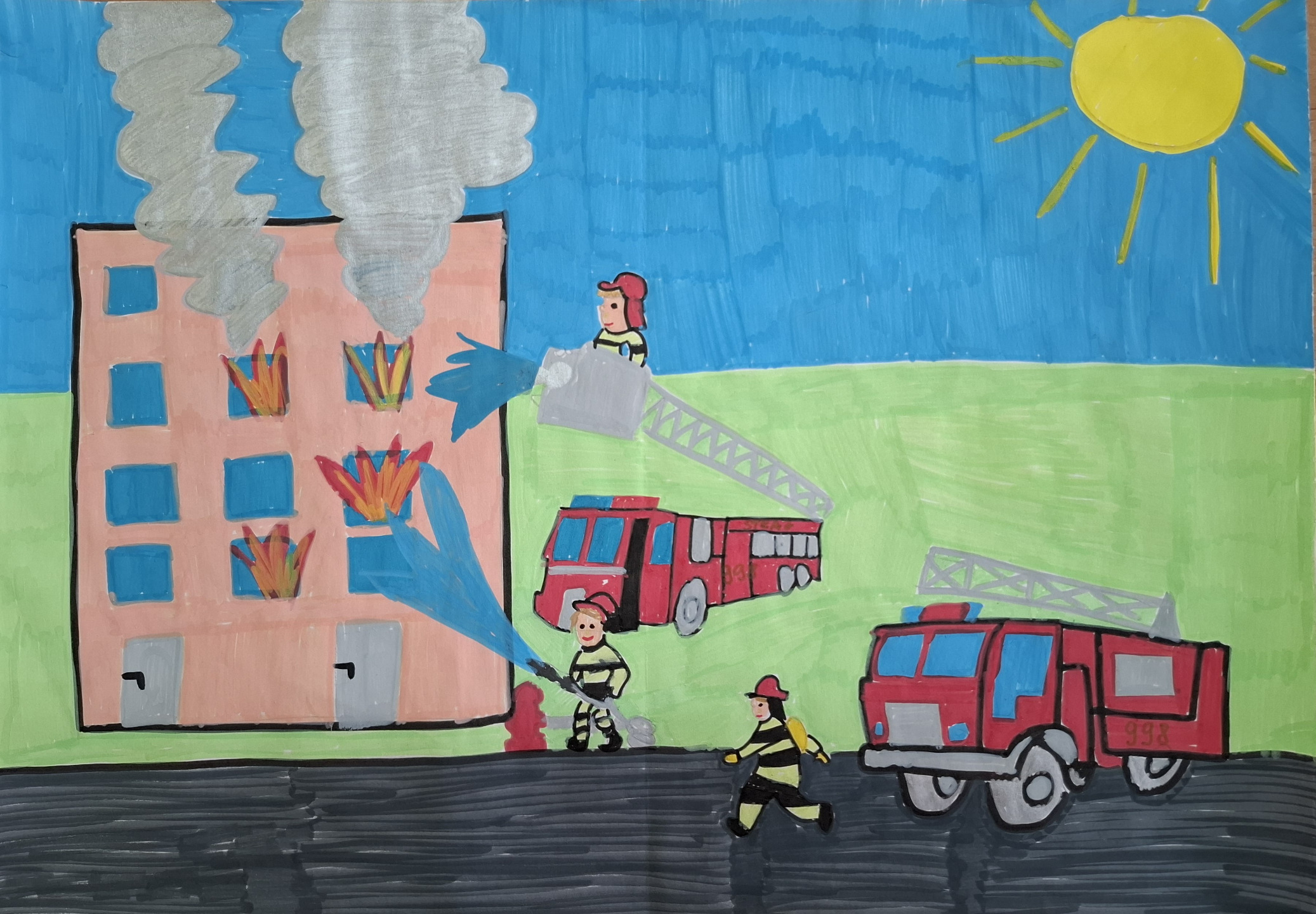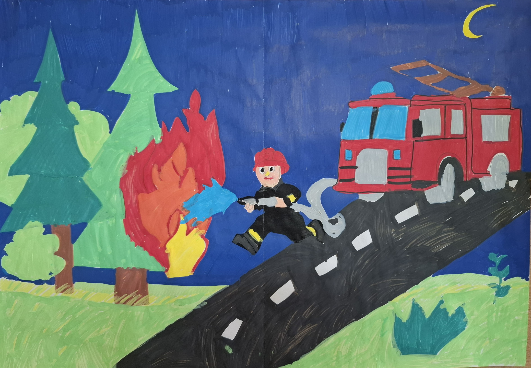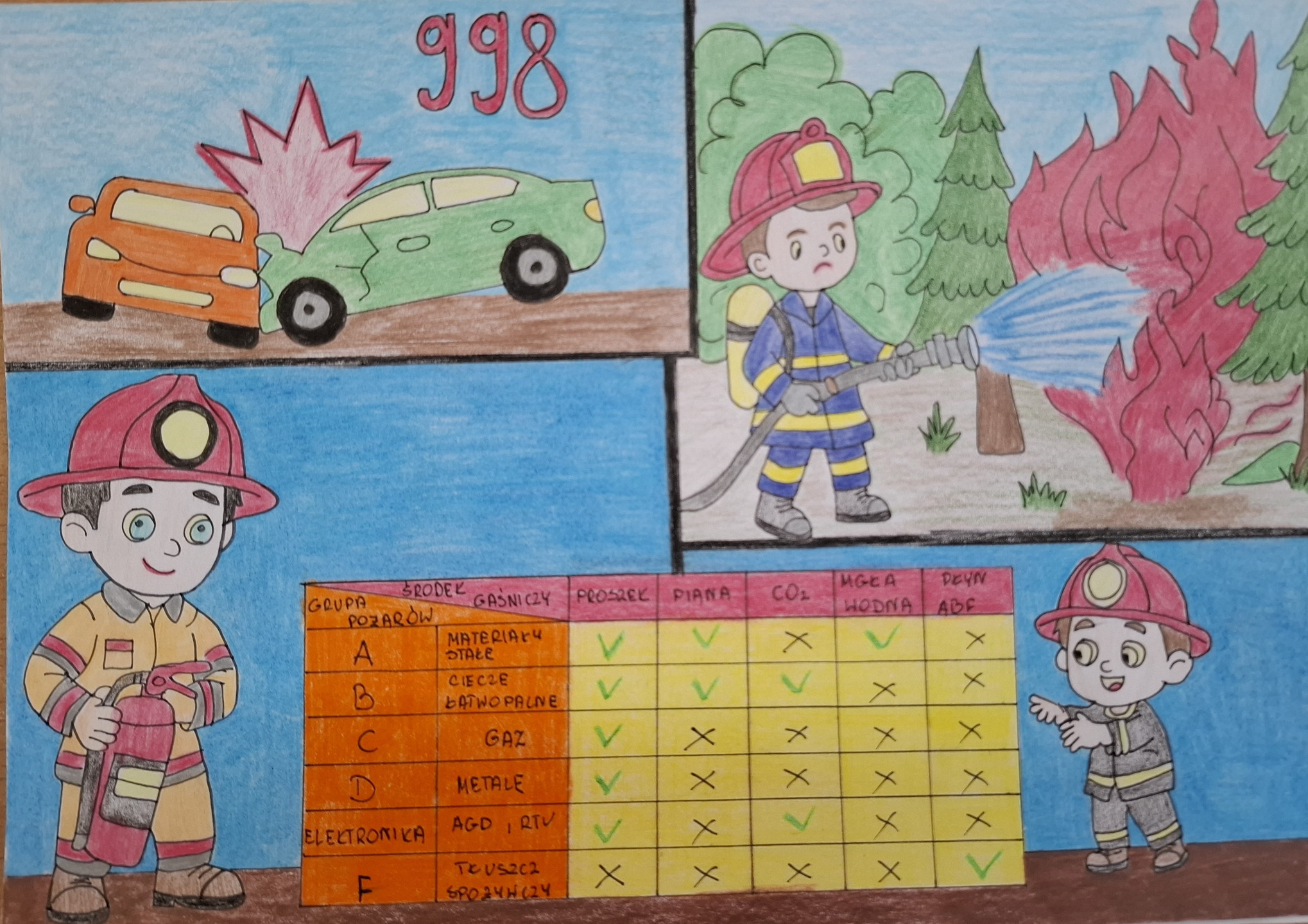 Uczestnicy przygotowali prace plastyczne przedstawiające działania strażaków oraz ich zaangażowanie w pomoc drugiemu człowiekowi. Prace wyróżniały się pomysłowością, starannością wykonania oraz ciekawym ujęciem tematu.
