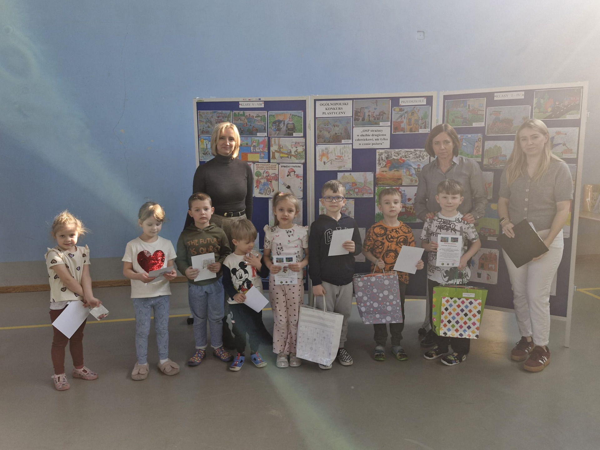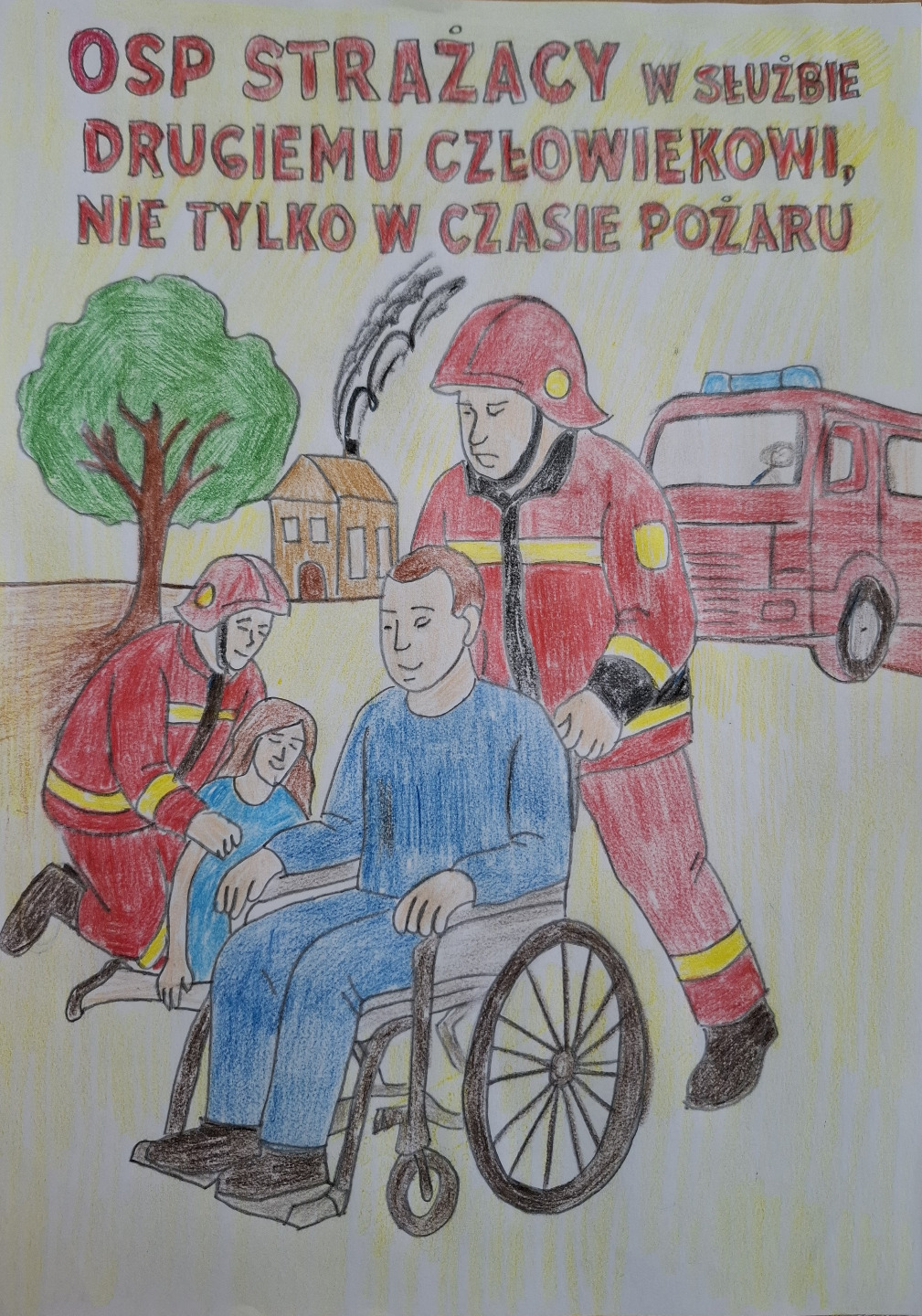 W ogólnopolskim konkursie plastycznym pt. „OSP strażacy w służbie drugiemu człowiekowi, nie tylko w czasie pożaru” wzięli udział nasi uczniowie. Na etapie szkolnym wpłynęło 37 prac plastycznych. Celem konkursu było zwrócenie uwagi na ważną rolę strażaków z Ochotniczej Straży Pożarnej, którzy na co dzień niosą pomoc ludziom nie tylko podczas pożarów, ale także w wielu innych sytuacjach zagrożenia.