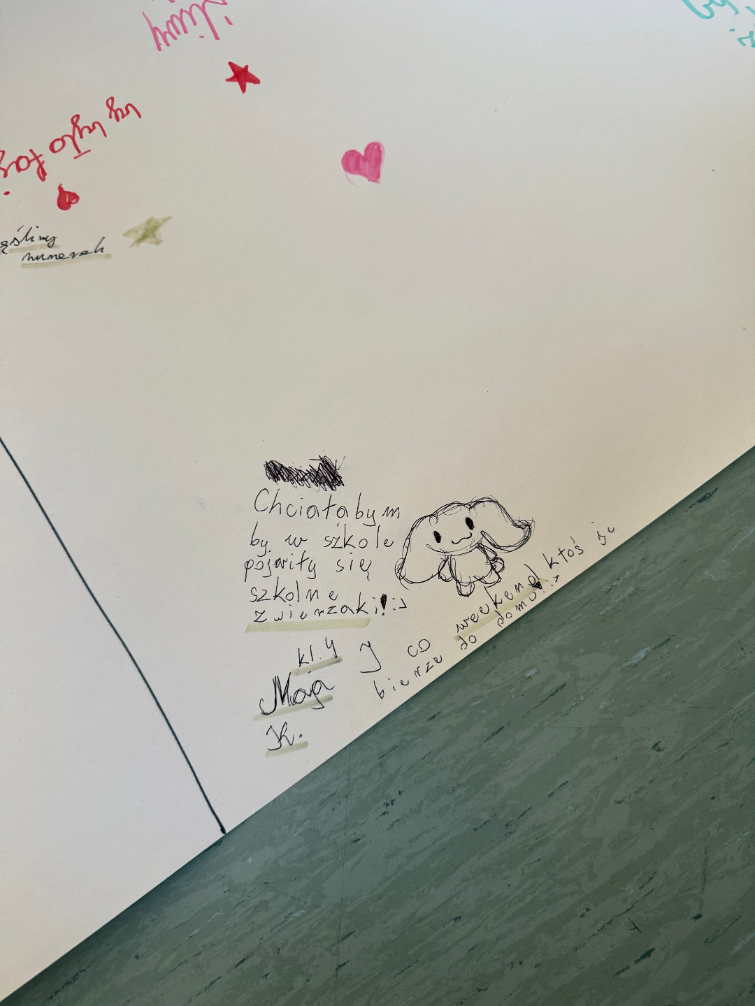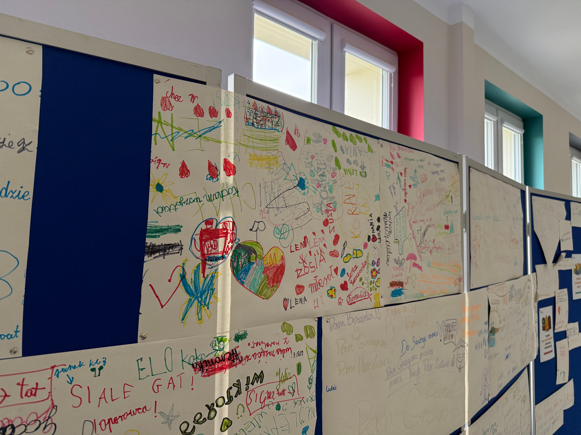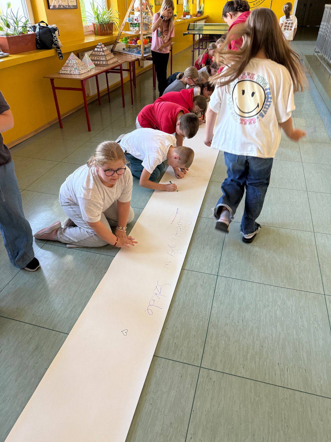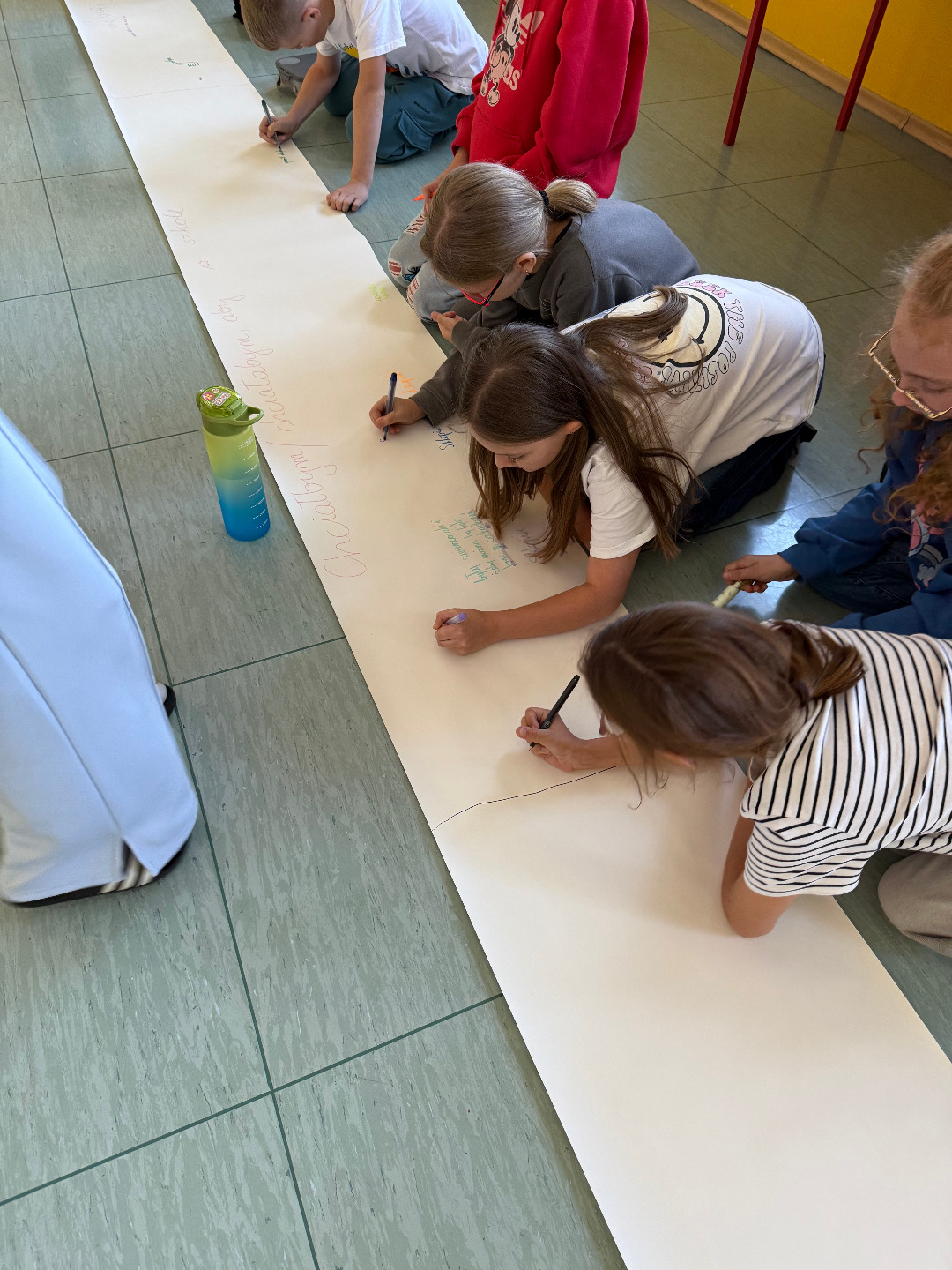 Tydzień o Dobrych Relacjach i Tydzień o Przeciwdziałaniu Przemocy Rówieśniczej to trwający w ubiegłym tygodniu czas przypominania o tym, co ważne jest w przestrzeni szkolnej. Kształtowanie pozytywnych relacji w grupach rówieśniczych do podstawa przeciwdziałania przemocy rówieśniczej. Nie jesteśmy w stanie zmusić uczniów aby się lubili, możemy ich nauczyć aby się szanowali mimo różnic. Możemy im przypominać, iż w każdym z nas jest potrzeba bycia dostrzeżonym i przyjętym do grupy. Możemy zaznaczać, iż bezpieczne środowisko szkolne zależy od nas wszystkich. Dlatego uczniowie w klasach, przedszkolaki w grupach rozmawiali w ubiegłym tygodniu o tym, jak ważne jest bycie “dobrą koleżanką i dobrym kolegą”, jak ważne jest okazywanie sympatii a jak trudne jest odbieranie wrogości i odrzucenia. Na szkolnych korytarzach rozłożyliśmy papierowe “chodniki”, na których uczniowie mogli zapisać swoje opinie na temat tego, co lubią a czego nie lubią w szkole, co chcieliby aby w szkole się wydarzyło, aby było nam wszystkim lepiej. Niektórzy potraktowali to zadanie jako sposób na spędzenie przerwy, miejsce na niezbyt poważne wypowiedzi. Byli też tacy, którzy podzielili się swoimi obawami, ulubionymi zajęciami, napisali na poważnie, czego nie lubią, czego się obawiają. Kolejnego dnia w podobnym zadaniu, na papierowym “chodniku” uczniowie mogli napisać kilka miłych słów, wzmacniających dla innych. Niektórzy wzmocnili przez to siebie, inaczej spędzili przerwę, ponownie okazali sympatię do zajęć, nauczycieli, koleżanek i kolegów.