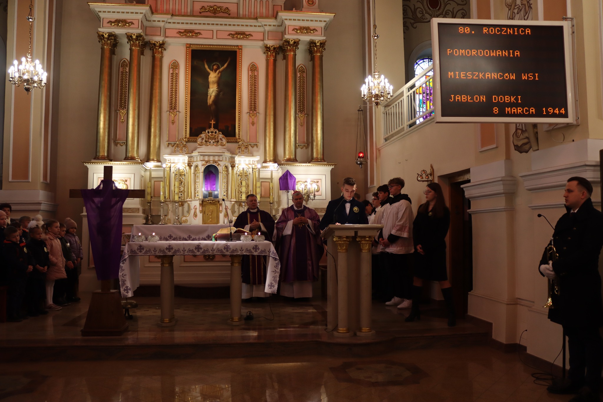 Uroczystość 80. Rocznicy Wymordowania Mieszkańców wsi Jabłoń Dobki odbyła się 17 marca 2024r. Obchody rozpoczęto uroczystą Mszą Św. na zakończenie której uczniowie i absolwenci ZSP w Jabłoni Kościelnej zaprezentowali pokaz słowno- muzyczny. Następnie wszyscy przybyli goście, uczniowie ZSP w Jabłoni Kościelnej oraz okoliczni mieszkańcy udali się do wsi Jabłoń Dobki na miejsce kaźni, by oddać hołd pomordowanym mieszkańcom wsi Jabłoń Dobki.