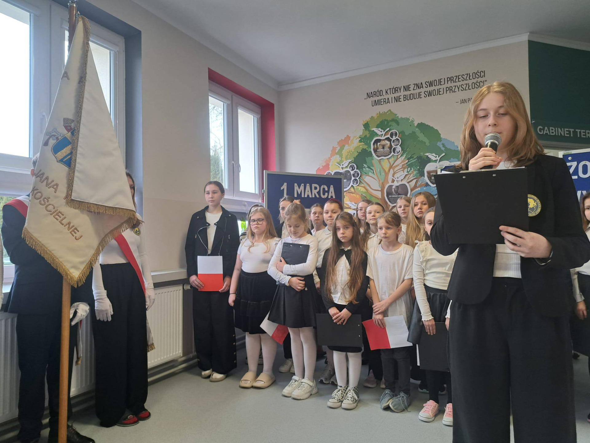 Dziś odbył się uroczysty Apel poświęcony pamięci Żołnierzy Wyklętych przygotowany przez uczniów i nauczycieli naszej szkoły.
