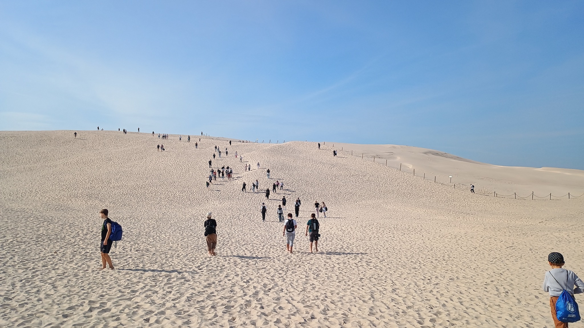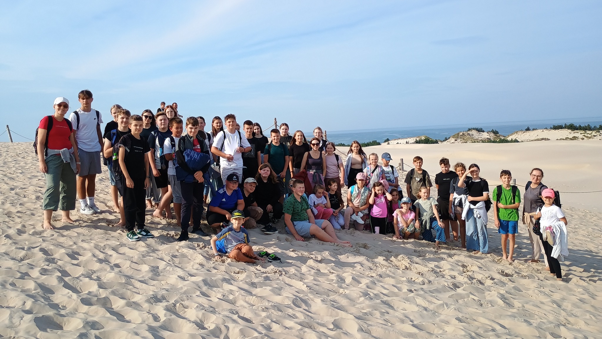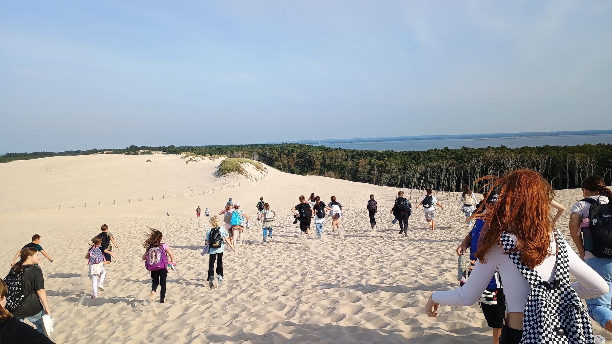 Drugi dzień wycieczki miał zupełnie inny charakter. W okolicach Łeby wspięliśmy się na wydmę Łęcką, z której rozpościerały się niesamowite widoki. Czuliśmy się jak beduini na pustyni. Nie mogliśmy wymarzyć sobie lepszej pogody na spacer brzegiem morza. Nieco zmęczeni lecz szczęśliwi wróciliśmy do hotelu. Trzeci ostatni dzień to wizyta w fokarium na Helu. Mogliśmy obserwować karmienie z ssaków morskich podczas naszej wyprawy, nie zabrakło pięknej pogody dobrych humorów, pamiątek z którymi wróciliśmy do domu i pięknych wspomnień które zostaną z nami na długo oraz pytanie uczniów: daleko jeszcze?