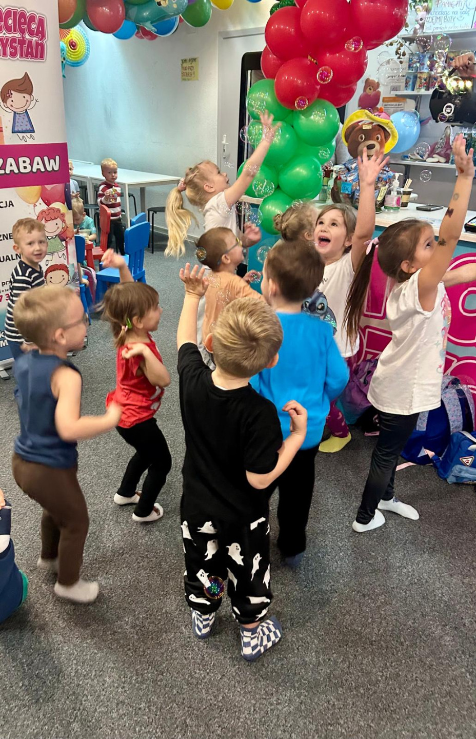 W dniu 23 października dzieci z grup 3-, 4- i 5-latków wybrały się na wycieczkę do kina Wars w Wysokiem Mazowieckiem, gdzie obejrzały niezwykle ciekawą bajkę „Basia”. Przygody rezolutnej dziewczynki i jej rodziny bardzo spodobały się przedszkolakom. Dzieci z niezwykłym zainteresowaniem śledziły przygody głównej bohaterki. Po seansie przedszkolaki udały się do sali zabaw „Dziecięca Przystań”, gdzie mogły aktywnie spędzić czas, bawiąc się i integrując z rówieśnikami.