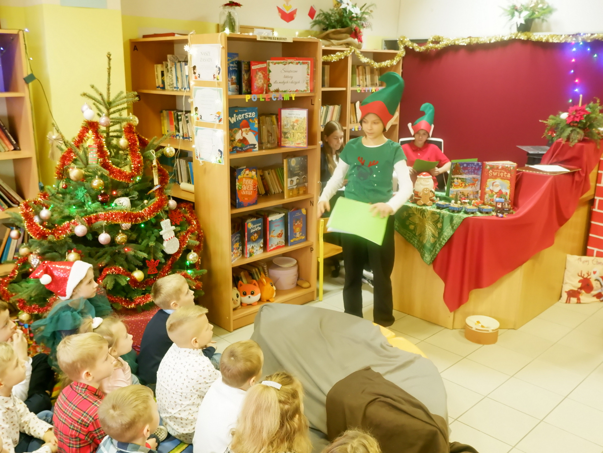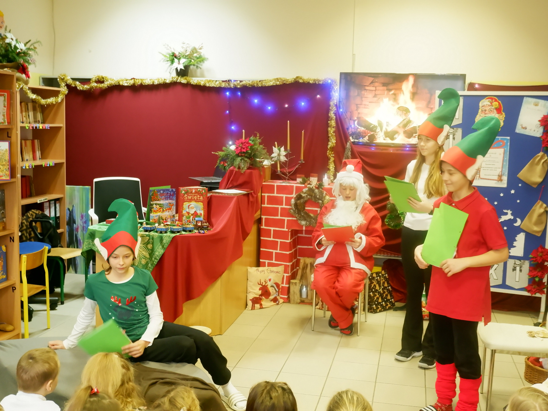 5 grudnia w naszej szkole odbyło się wyjątkowe spotkanie w naszej szkolnej bibliotece, które wypełniło serca wszystkich uczestników radością i ciepłem. Najmłodszych uczniów powitał Święty Mikołaj wraz z uroczymi elfami. Dzieci miały okazję wysłuchać pięknej świątecznej opowieści .