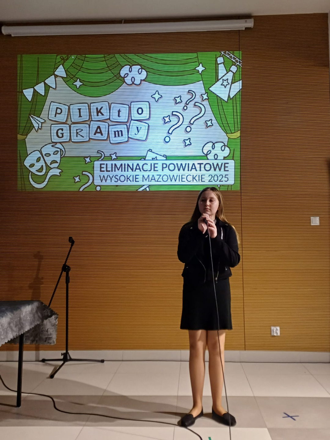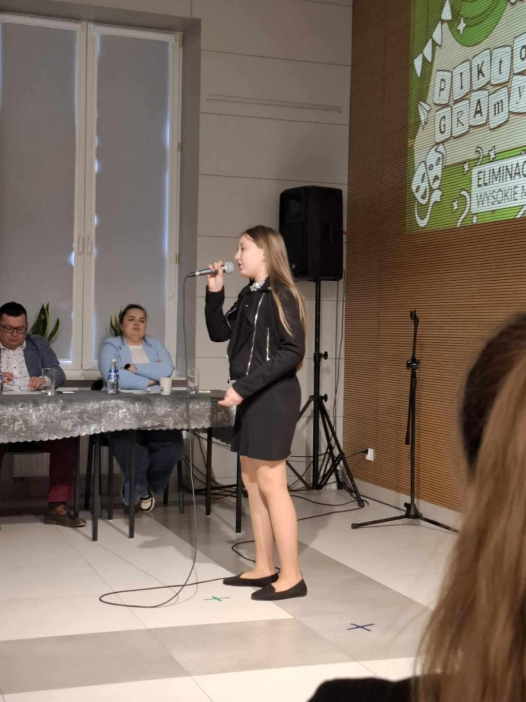 I miejsce w kategorii klas IV-VI zdobyła Daria. Tym samym z radością informujemy, że Daria w swojej kategorii wiekowej będzie reprezentować powiat wysokomazowiecki podczas Wojewódzkiego Przeglądu Amatorskiej Twórczości Teatralnej w kategorii artystycznej Mistrzowie Piosenki.