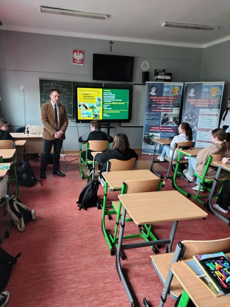 W dniu wczorajszym naszych ósmoklasistów odwiedził dr Rafał Iwan - Dyrektor szkoły wraz z przedstawicielami uczniów ZSR w Krzyżewie – w delegacji uczniowskiej znalazł się nasz absolwent Mateusz Chim. Ósmoklasiści zostali zapoznani z ofertą szkoły w Krzyżewie i zaproszeni do składania aplikacji.