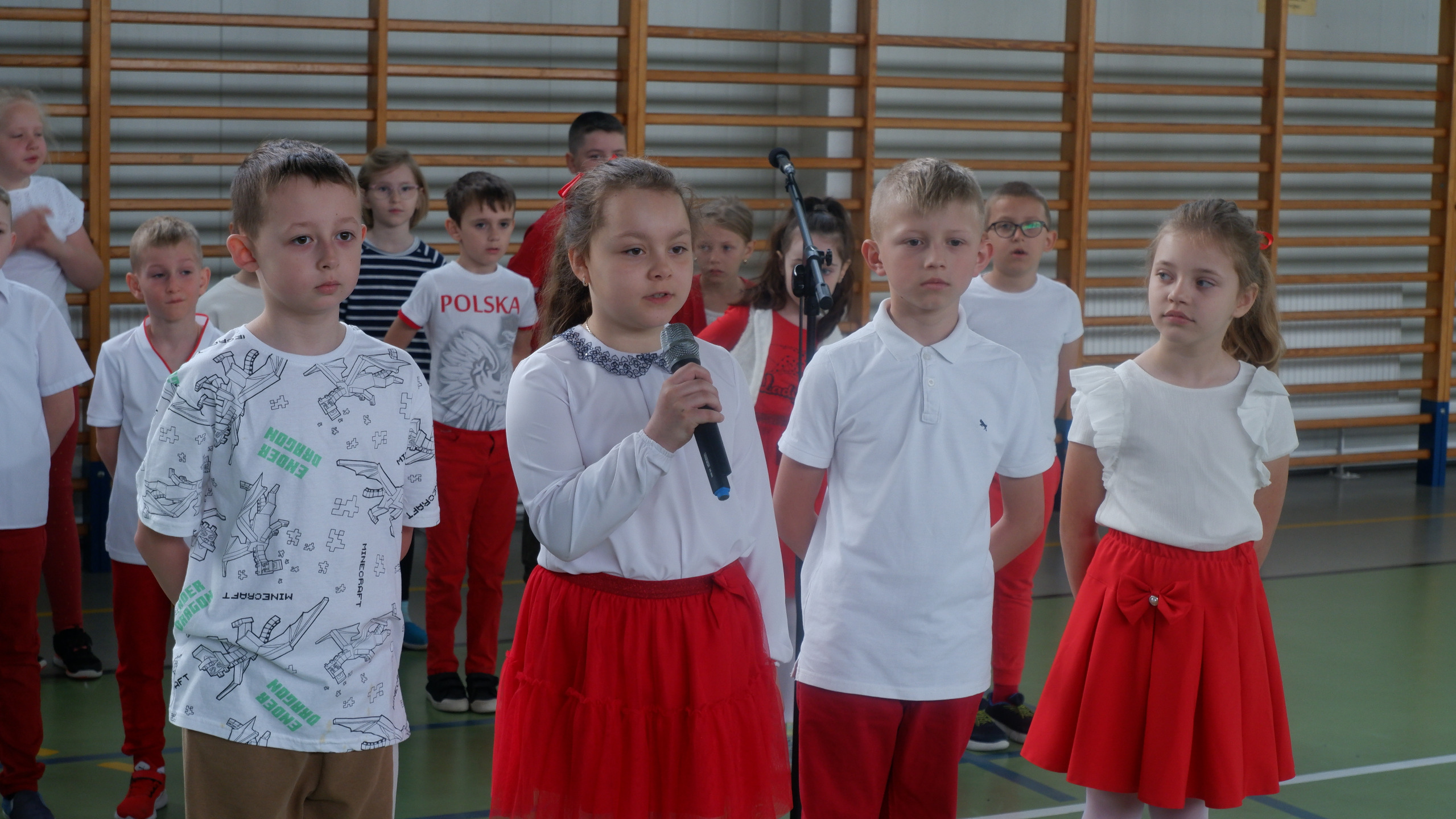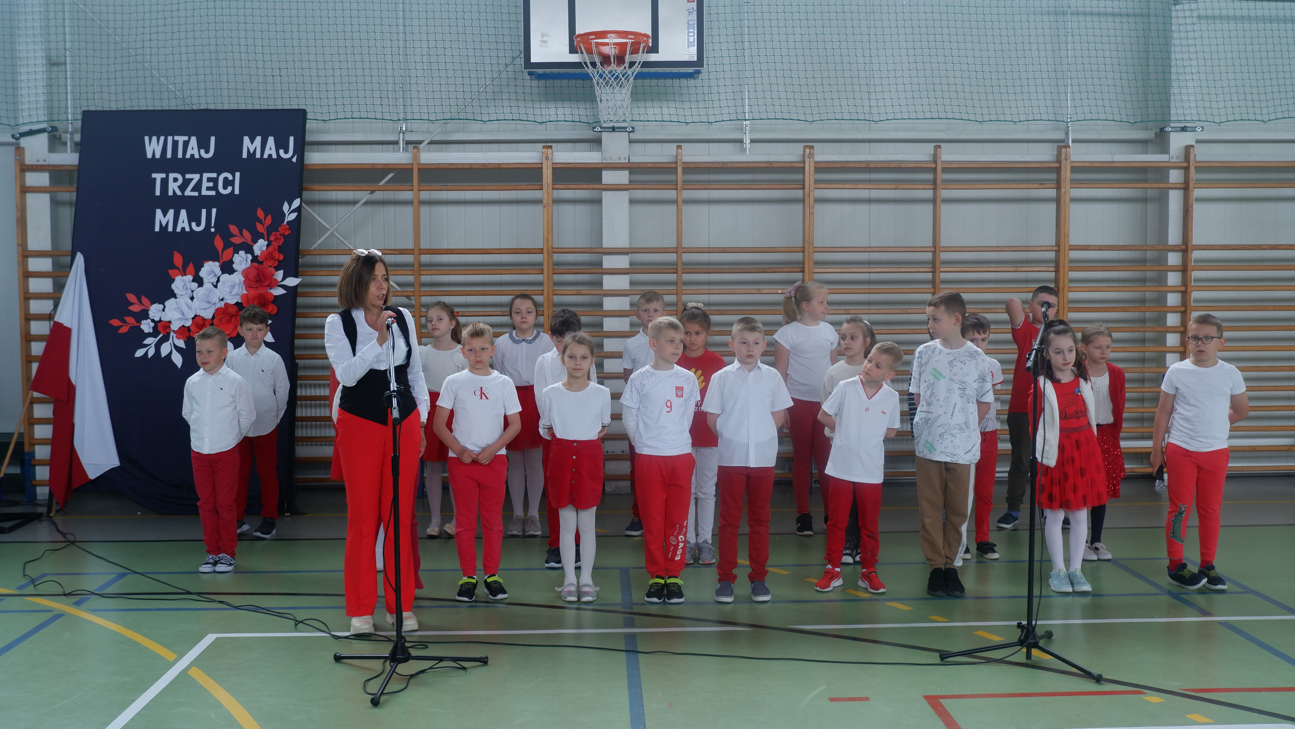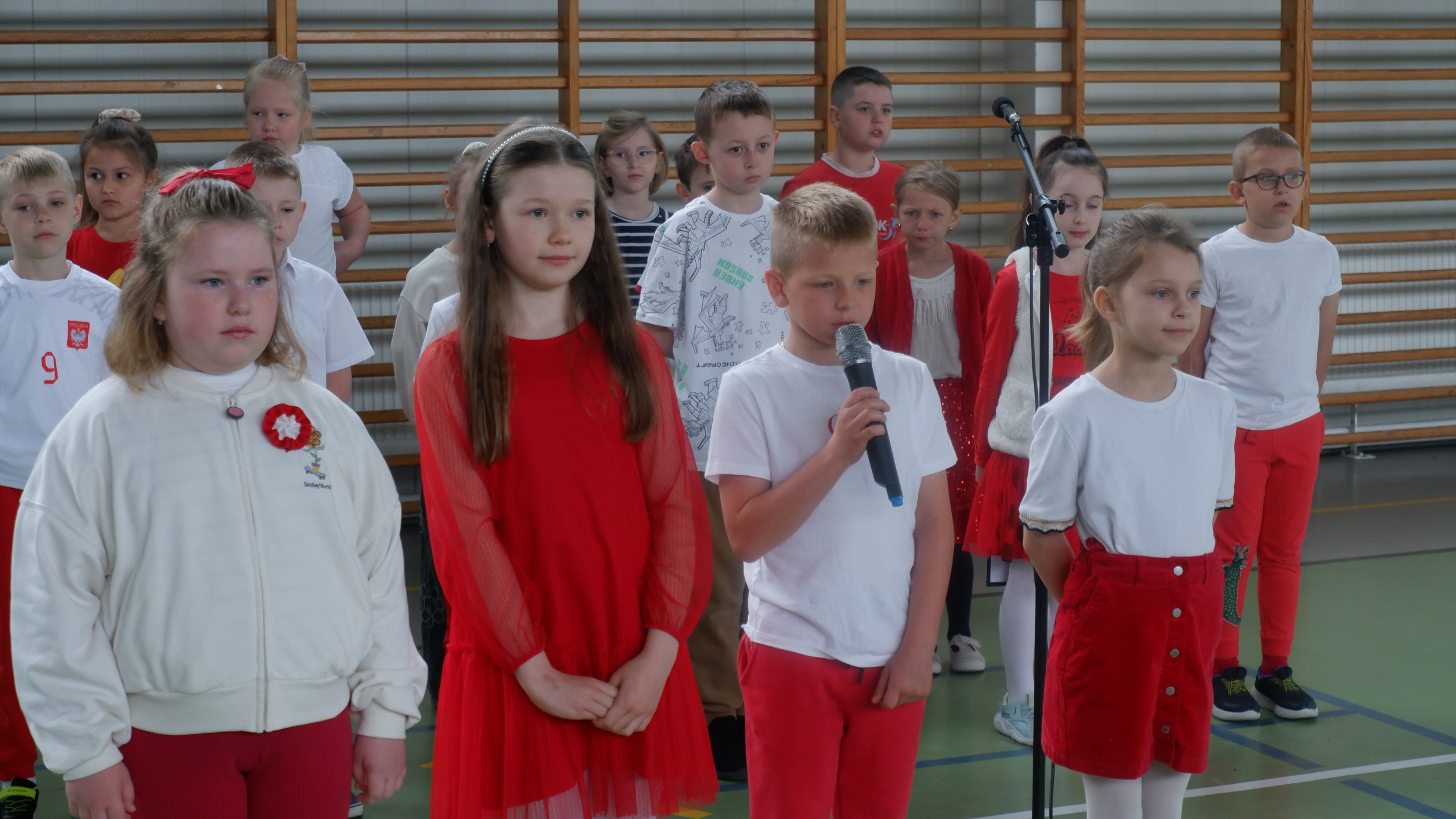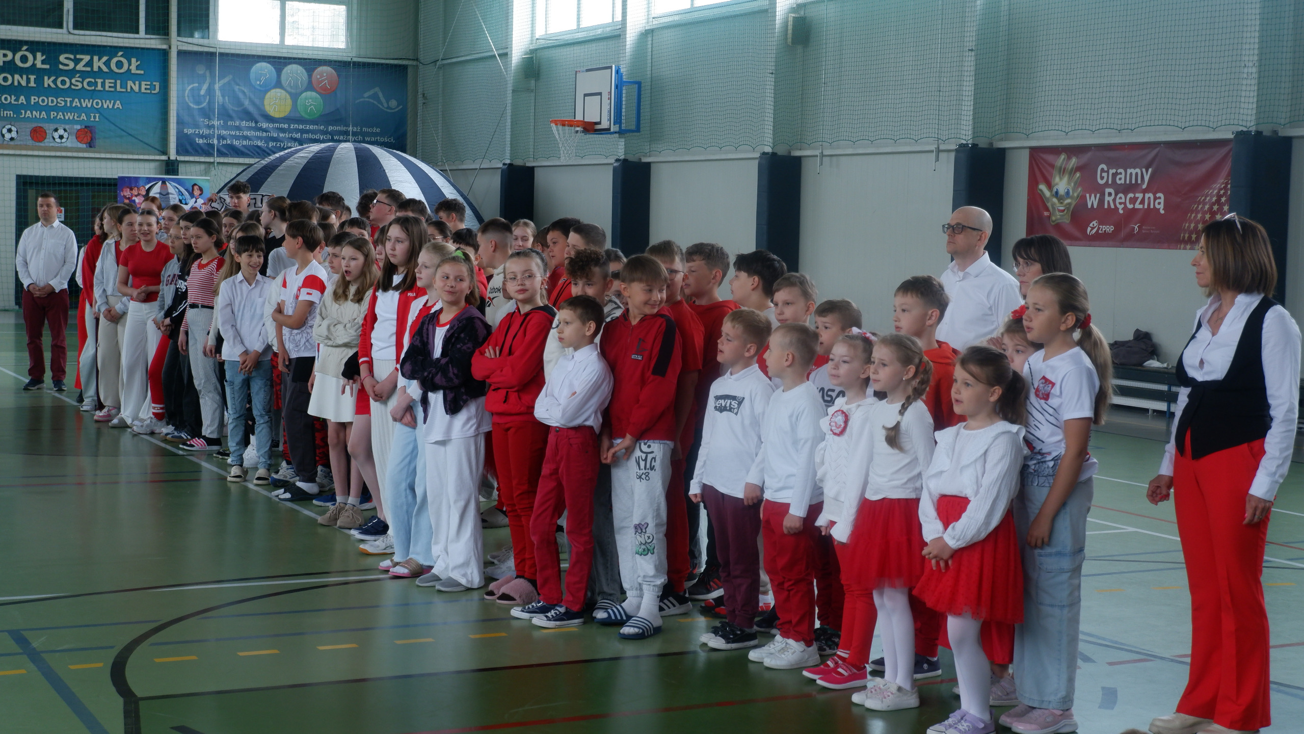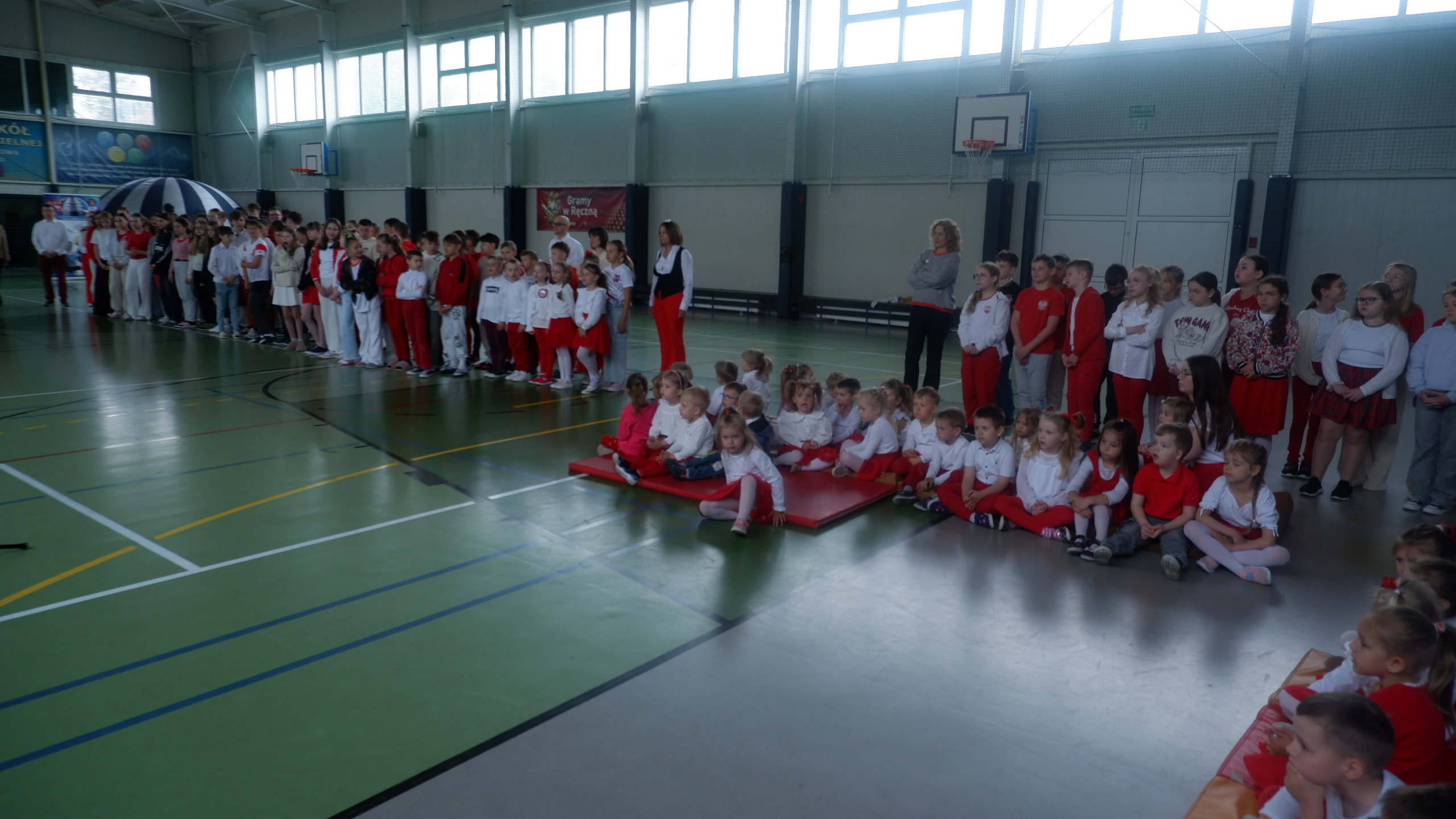 W dniu 30 kwietnia 2025r. odbył się w naszej szkole uroczysty apel z okazji uchwalenia Konstytucji 3 Maja, w którym udział wzięła cała społeczność szkolna. Rozpoczęliśmy wspólnym odśpiewaniem hymnu "Mazurek Dąbrowskiego", a następnie mieliśmy przyjemność oglądać część artystyczna przygotowaną przez uczniów klasy I i II. Było pięknie, patriotycznie i biało-czerwono.